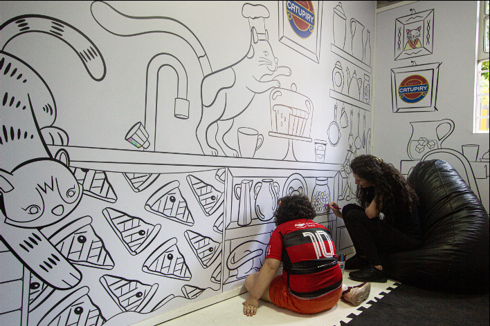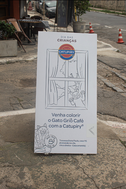 Para a ação de Dia das Crianças, transformamos o Gato Griot Café em um cenário interativo com ilustrações para colorir. A ação envolveu crianças e famílias em uma experiência lúdica, criativa e afetiva.